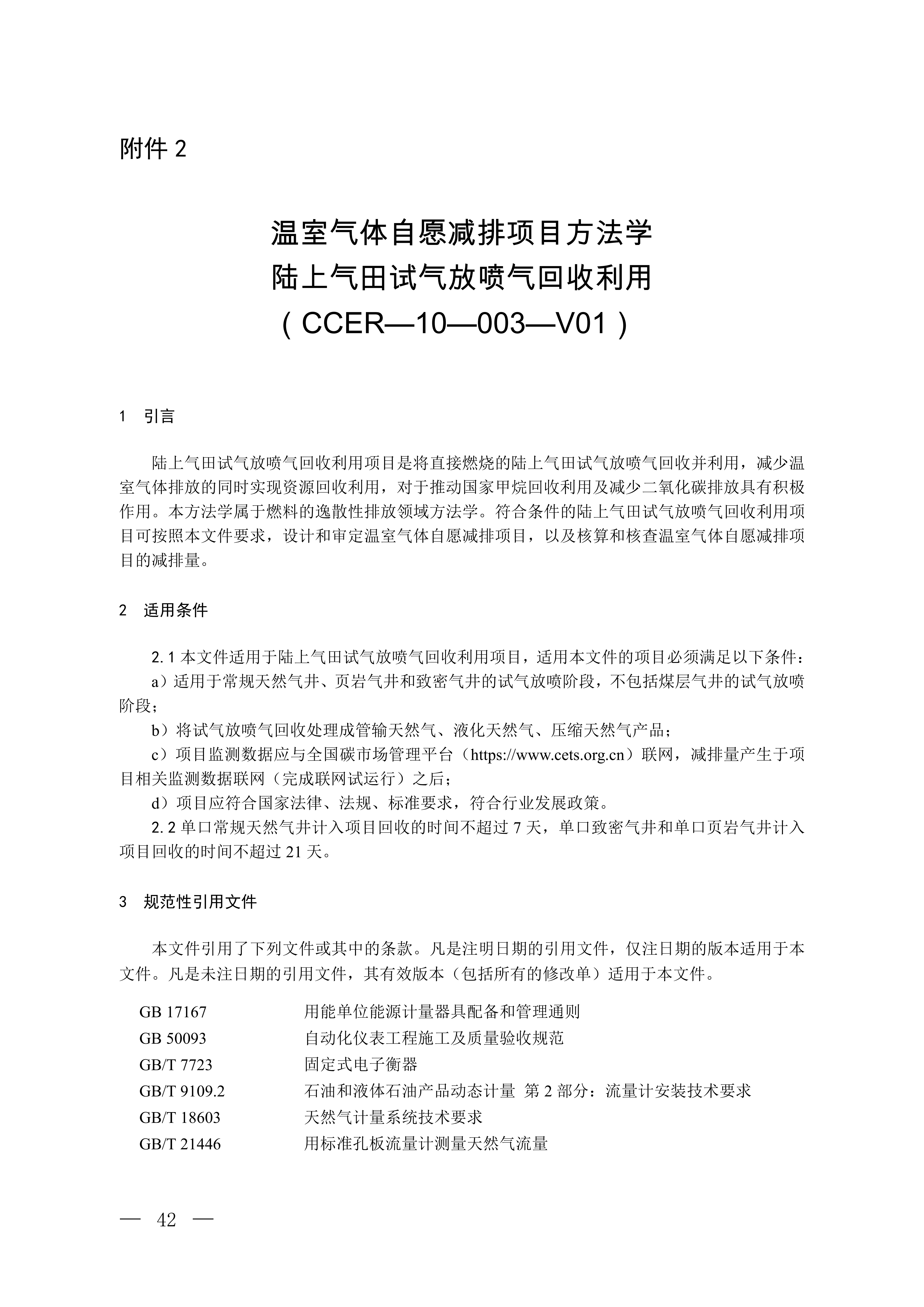 2.温室气体自愿减排项目方法学 陆上气田试气放喷气回收利用(CCER-10-003-V01)