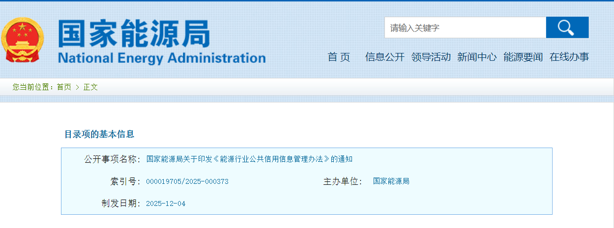 政策 | 国家能源局关于印发《能源行业公共信用信息管理办法》的通知